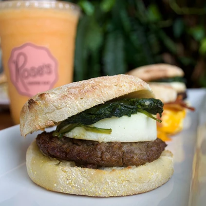 Farm Fresh Egg White Patty, Spinach, Impossible Chicken Sausage, English Muffin