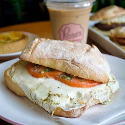 Tomato, Mozzarella Cheese, Pesto Shmear, Ciabatta Bread